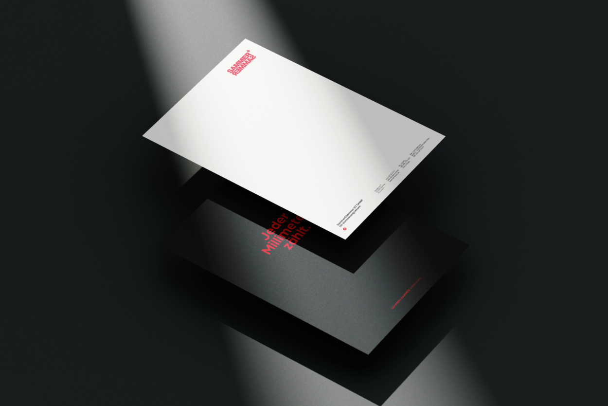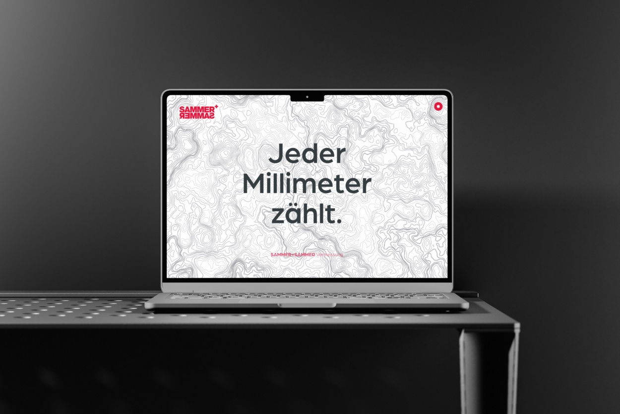 Wo Millimeter zählen, zählt Vertrauen: Auf dieser Prämisse basieren das Gesamtkonzept und die Brandstory. Das Corporate Design visualisiert Präzision und Verlässlichkeit, während es gleichzeitig die langjährige Tradition des Familienunternehmens spiegelt. Diese Werte spiegeln auch den persönlichen Anspruch von DI Erich Sammer. Der Claim gibt es treffen wieder: „Jeder Millimeter zählt.“ steht hier für absolute Präzision. Der Logoaufbau verknüpft tiefe Wurzeln und Historie (seit 1970) mit Zukunft und Innovation. Elemente wie Spiegelung und Reflexion verweisen auf die Genauigkeit und Exaktheit – unverrückbare Prämissen im Vermessungswesen. Das im Logo zweimal vorkommende und exakt übereinander angeordnete Kürzel „MM“ steht sinnbildlich für Millimeter und damit für die kleinste, aber entscheidende Maßeinheit bei Bauprojekten. Die Gestaltung vermittelt nicht nur Messwerte, sondern auch fundiertes Wissen, technologische Expertise und partnerschaftliche Zusammenarbeit. So entsteht ein Markenauftritt, der Sicherheit und Präzision ausstrahlt – und Sammer & Sammer klar als verlässlichen, zukunftsorientierten Partner im Vermessungswesen positioniert.